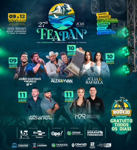 A realização de shows com artistas de renome nacional e com entrada franca reforça o compromisso da organização da FEAPAN em promover um evento inclusivo, permitindo que todos os moradores e visitantes de Corumbá, Ladário e região possam desfrutar das atrações sem custo.